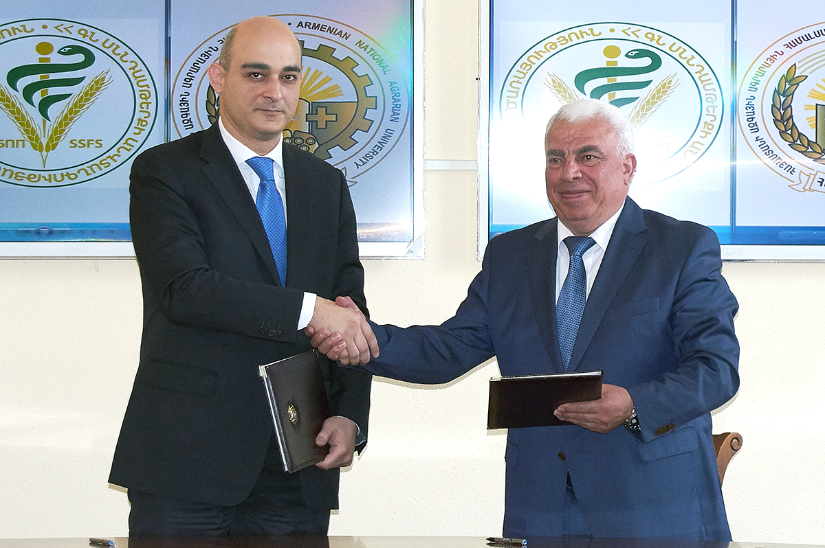 Սննդամթերքի անվտանգության ոլորտում վերահսկողություն իրականացնող և մասնագիտական կրթություն ապահովող կառույցների միջև փոխգործակցության ուղղություններն այսուհետև ամրագրված կլինեն փաստաթղթով: ՀՀ ԳՆ սննդամթերքի անվտանգության պետական ծառայության (ՍԱՊԾ) և Հայաստանի ազգային ագրարային համալսարանի (ՀԱԱՀ) միջև մայիսի 18-ին ստորագրվել է համագործակցության հուշագիր, որը հնարավորություն կստեղծի մի կողմից, սննդամթերքի անվտանգության ապահովման նպատակով, կիրառել առկա գիտական ներուժը, մյուս կողմից՝ համալսարանի մասնագետներին և ուսանողներին ներգրավել ՍԱՊԾ-ի կողմից իրականացվող աշխատանքներում՝ ամրապնդելով վերջիններիս գործնական գիտելիքները: Համալսարանի ռեկտոր Արշալույս Թարվերդյանը եւ ՍԱՊԾ պետ Իշխան Կարապետյանը, ստորագրելով համատեղ աշխատանքներն էլ ավելի սերտ, կանոնակարգված ու հստակեցված դարձնող հուշագիրը, կարևորել են